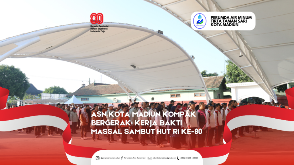 Dalam rangka Memperingati HUT ke-80 Kemerdekaan Republik IndonesiaPerumda Air Minum Tirta Taman Sari Kota Madiun Pada hari Jumat pagi, bertempat di halaman kantor Perumda Air Minum Tirta Taman Sari Kota Madiun, telah diselenggarakan kegiatan lomba baris berbaris dengan mata tertutup dalam rangka memeriahkan Hari Ulang Tahun ke-80 Kemerdekaan Republik Indonesia. Kegiatan ini diikuti oleh seluruh…