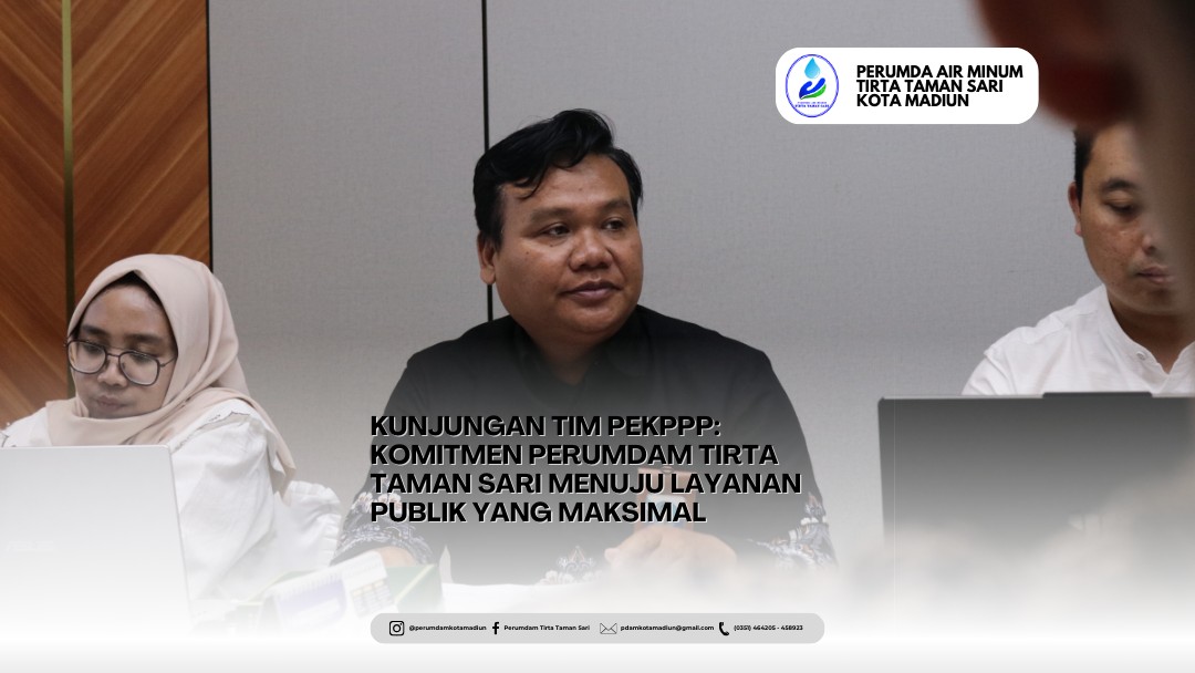 Jumat, 11 Juli 2025, Perumda Air Minum Tirta Taman Sari Kota Madiun menerima kunjungan dari Tim Pemantauan dan Evaluasi Kinerja Penyelenggara Pelayanan Publik (PEKPPP) Pemerintah Kota Madiun. Kunjungan ini bertujuan untuk melakukan wawancara serta pendampingan dalam rangka menilai kualitas penyelenggaraan layanan publik yang diberikan oleh Perumda Air Minum Tirta Taman Sari.