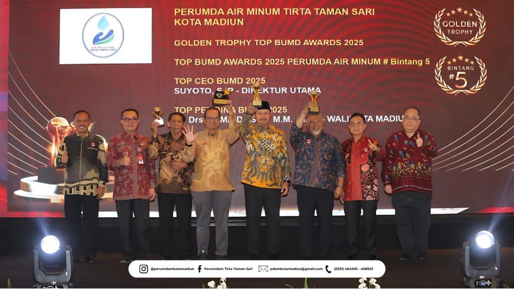 Perumda Air Minum Tirta Taman Sari Kota Madiun meraih 4 pengahargaan yaitu, Golden Trophy Top BUMD Awards 2025, Top BUMD Awards 2025 Bintang 5, Top Pembina BUMD Awards 2025, untuk Wali Kota Madiun Dr. Maidi sebagai Pembina dan Kuasa Pemilik Modal Perumdam Tirta Taman Sari Kota Madiun, Top CEO BUMD 2025 untuk Direktur Utama Perumda Tirta Taman Sari Kota Madiun, Bapak Suyoto.