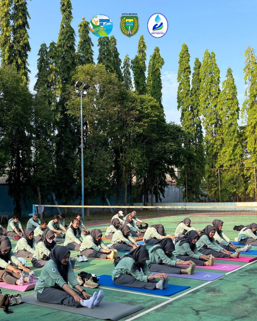 Ada yang beda di Jumat pagi ini! Seluruh pegawai Perumda Air Minum Tirta Taman Sari Kota Madiun mengikuti kegiatan olahraga pagi yang sedikit berbeda dari biasanya — yaitu senam yoga!
